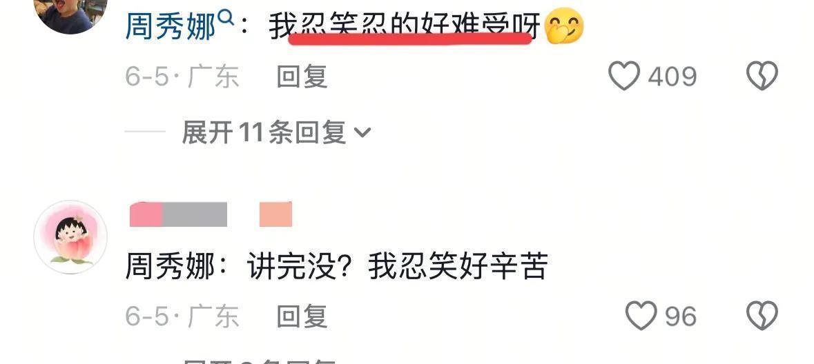 一旁的周秀娜全程憋笑,一副看热闹不嫌事大的模样。但又不敢笑出声,忍得太辛苦!